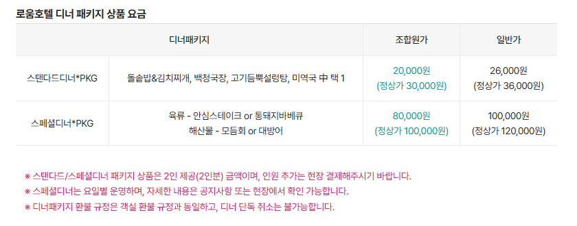 비조합원이 이용할 경우 추가 요금이 발생하며, 예약 시 해당 금액이 별도로 안내됩니다. 또한 예약 시점에 따라 얼리버드 할인이나 패키지 할인 등의 프로모션도 제공되므로 공식 홈페이지를 자주 확인하는 것이 좋습니다.